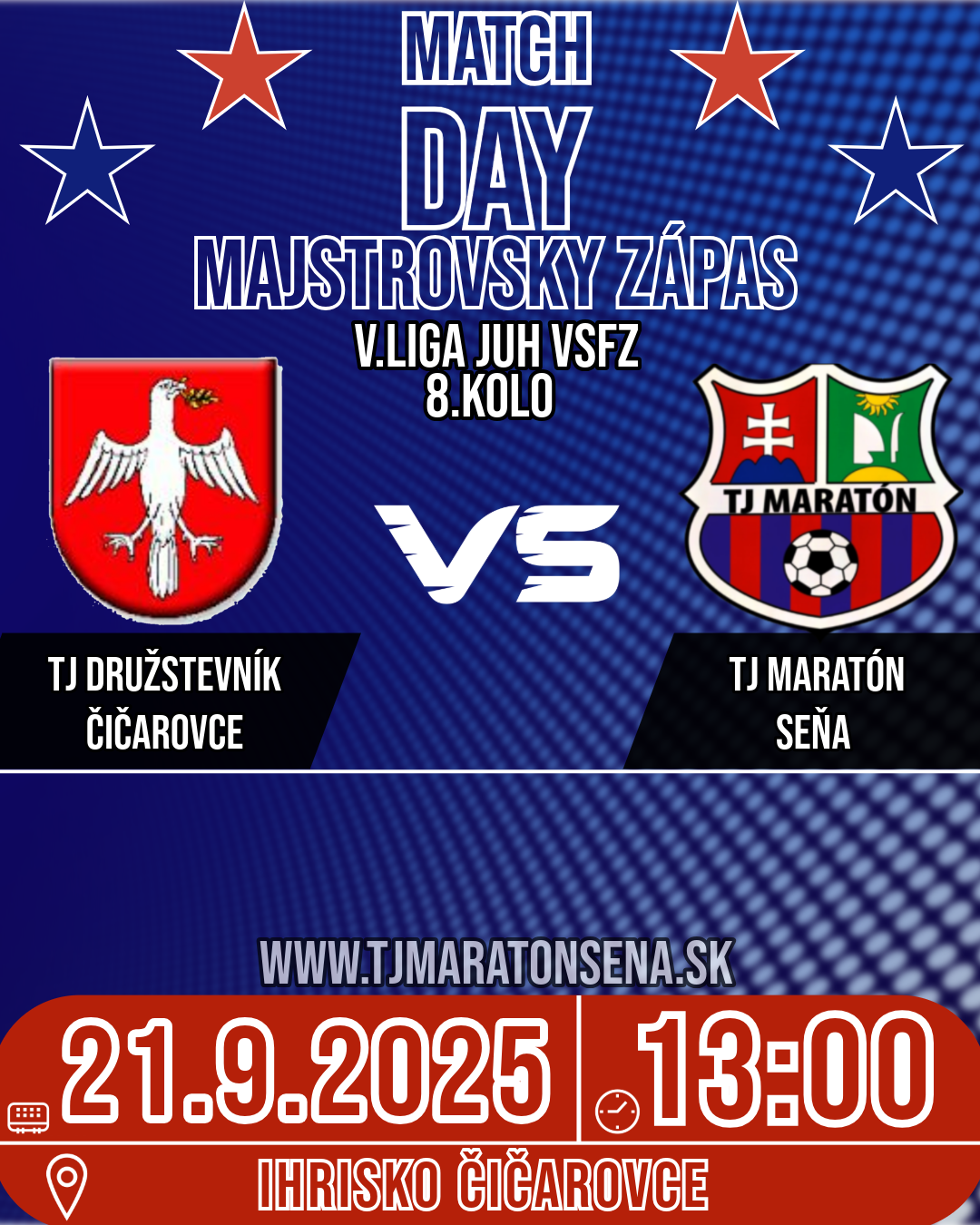 Majstrovský zápas proti TJ Družstevník Čičarovce , zápas odohráme u súpera.